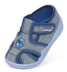 Gdy za oknem robi się cieplej, warto postawić na kapcie-sandałki Viggami TOMEK w modnym, granatowym kolorze. Odkryte palce zapewniają optymalną wentylację, co jest szczególnie ważne dla aktywnych chłopców. Jednocześnie wzmocniona pięta gwarantuje stabilność i ochronę stopy podczas zabawy.